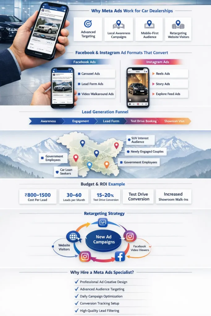 If you want to understand how paid search complements Meta campaigns, read our detailed guide on Google Ads for Car Dealerships in Kashmir.